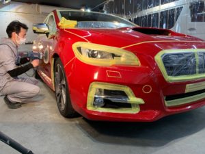 スバルのレッドボディもくすんでしまっており本来の輝きが失われております。
